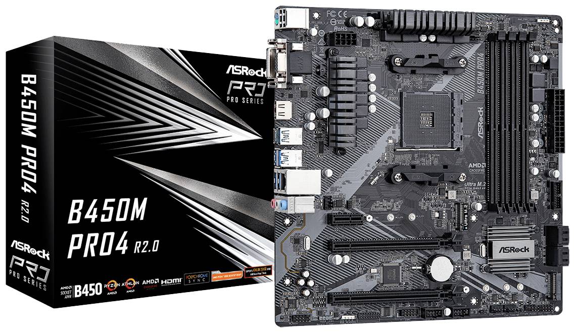 ASRock B450M Pro4 R2.0 Základní deska Socket (PC) AMD AM4 Tvarový faktor Micro-ATX Čipová sada základní desky AMD® B450
