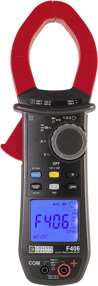 Chauvin Arnoux F406 proudové kleště, ochrana proti stříkající vodě (IP54), CAT III 1500 V, CAT IV 1000 V, displej (count
