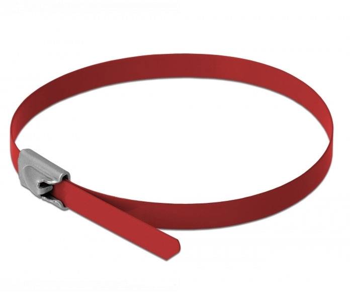 Delock 18780, Nerezová stahovací páska, červená, 10 ks