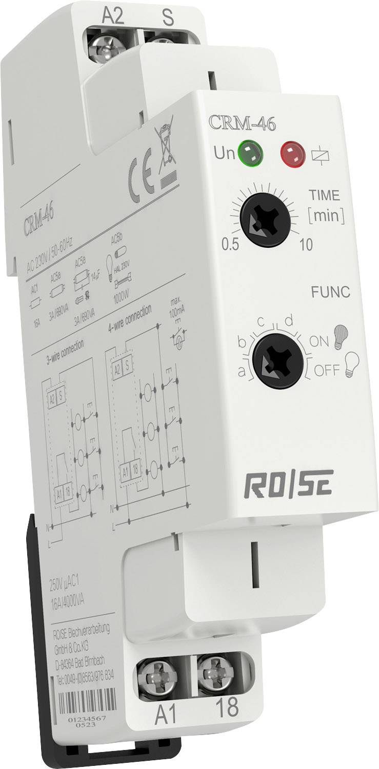 Rose LM CRM-46 CRM-46 schodišťové časové relé, 30 s - 10 min, 250 V/AC, 16 A, 1 ks