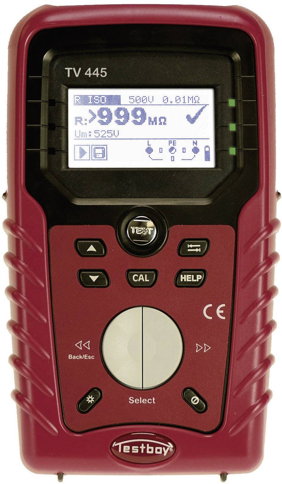 Testboy TV 445 přístrojový tester , Kalibrováno dle (ISO), Norma VDE 0100, Testboy TV 445-ISO, EN a DE menu