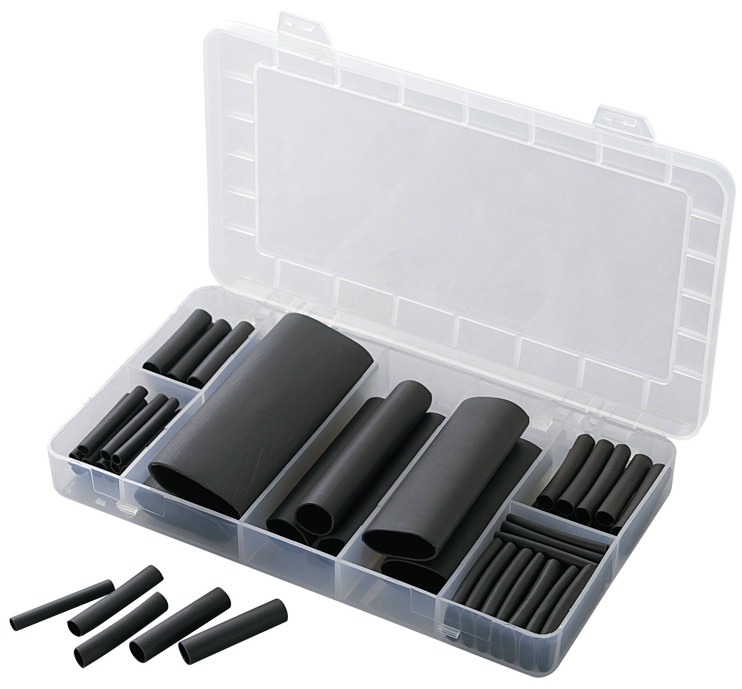 TRU COMPONENTS 1566305 sada smršťovacích bužírek černá Poměr smrštění:3:1 52 díly