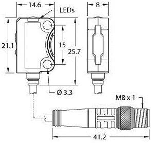 Turck VS8EAPLLPQ reflexní světelná závora, 3803433, 1 ks